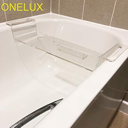 Onelux Acrylic Bathtub Mobilephone Pad Storage Shelf Rack Lucite Bathroom Wine Glass Holder Tray 82w18d Clear