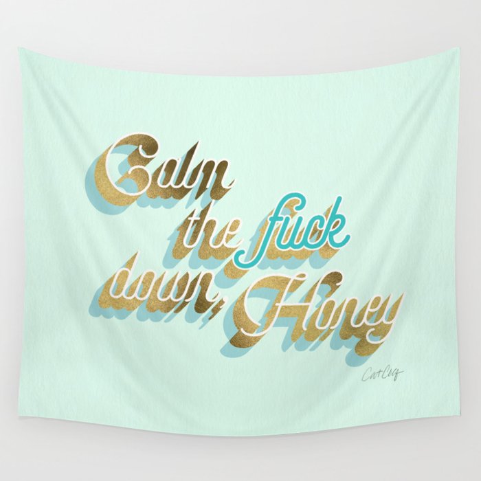 Calm The F Ck Down Honey Powder Blue Gold Palette Wall Tapestry